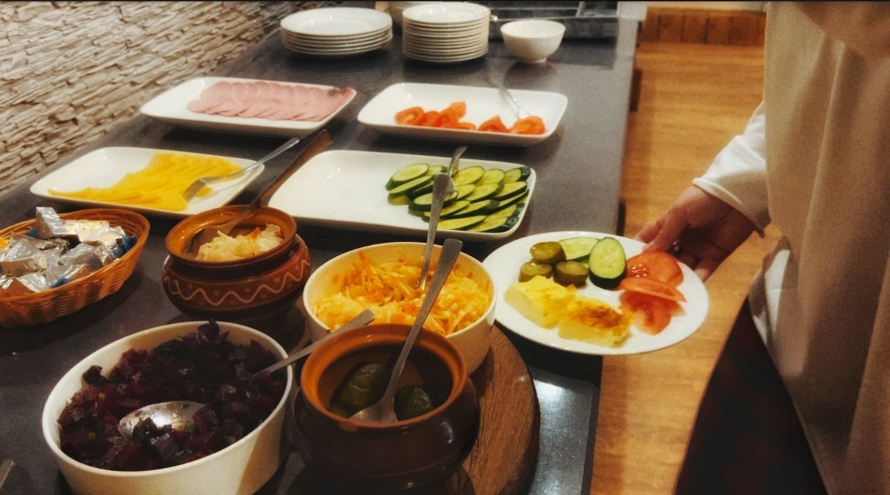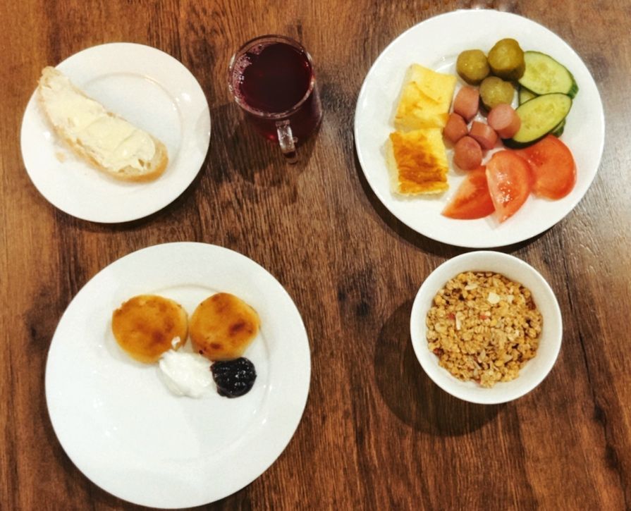 Шведский стол или континентальный завтрак по усмотрению администратора. Напитки, каши, панкейки, яйца, мюсли, десерты и другие вкусности. Приятного аппетита!